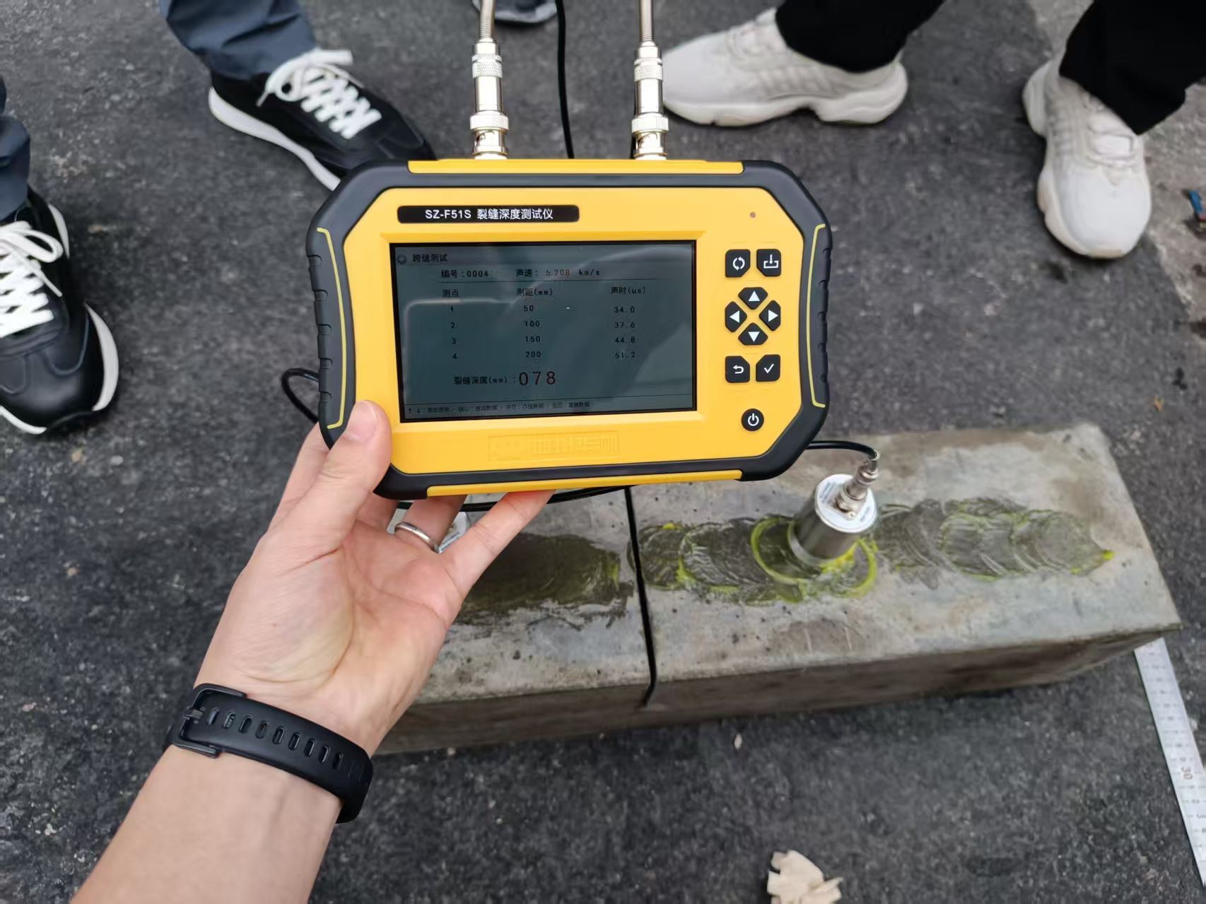 在模擬混凝土試塊的檢測環(huán)節(jié),SZ-F51S的性能優(yōu)勢全面凸顯。這款儀器基于聲波繞射原理研發(fā),搭載32位ARM內(nèi)核處理單元,最大可測裂縫深度達(dá)650mm,測試誤差≤10%,裂縫深度可以精確到0.1毫米,無需人工判讀聲參量,大幅提升檢測效率。其包膠外殼設(shè)計兼顧便攜性與防護(hù)性,硅膠防水鍵盤適配復(fù)雜工程環(huán)境,可拆卸松下鋰電池支持充電寶應(yīng)急充電,完美匹配現(xiàn)場檢測的多樣需求。參測機構(gòu)反饋,SZ-F51S在不同深度裂縫的模擬試塊檢測中,數(shù)據(jù)精準(zhǔn)度遠(yuǎn)超預(yù)期,且操作流程簡易,新手也能快速上手。
